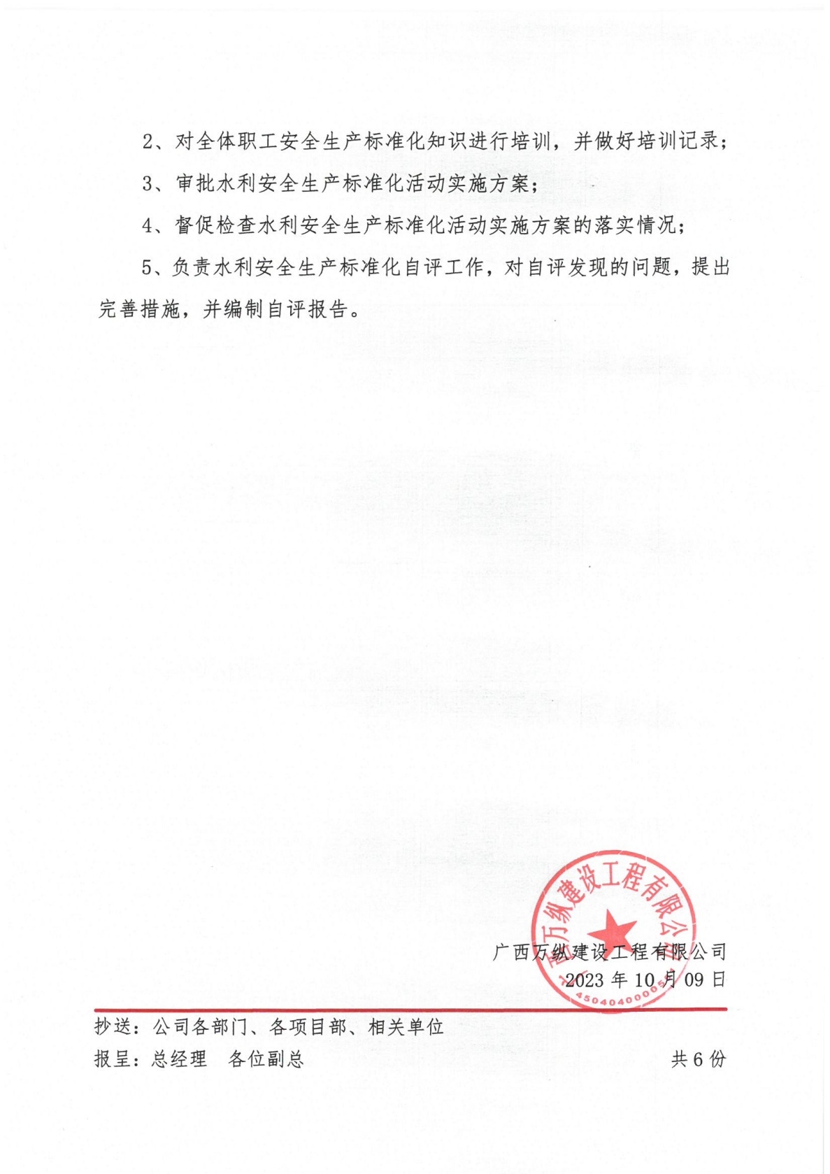 广西万纵建设工程有限公司关于成立公司安全生产标准化自评小组的通知