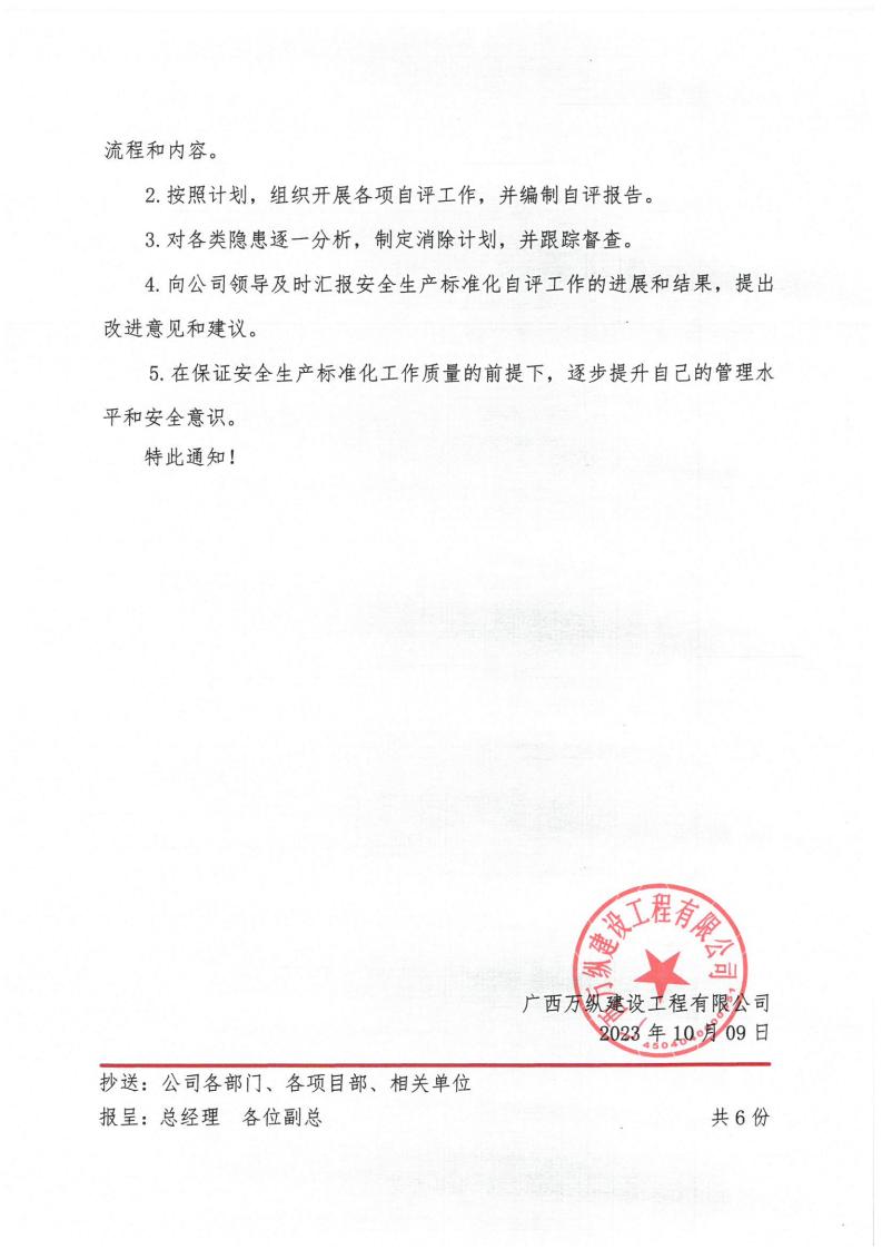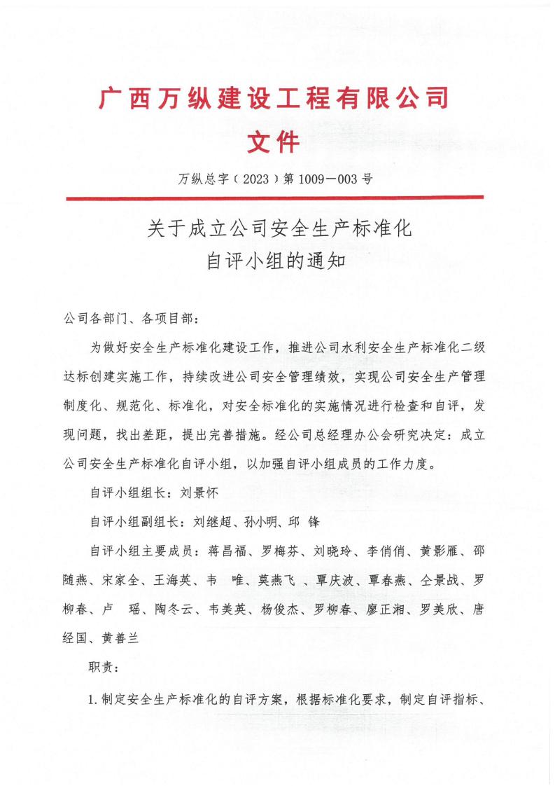 广西万纵建设工程有限公司关于成立公司安全生产标准化自评小组的通知