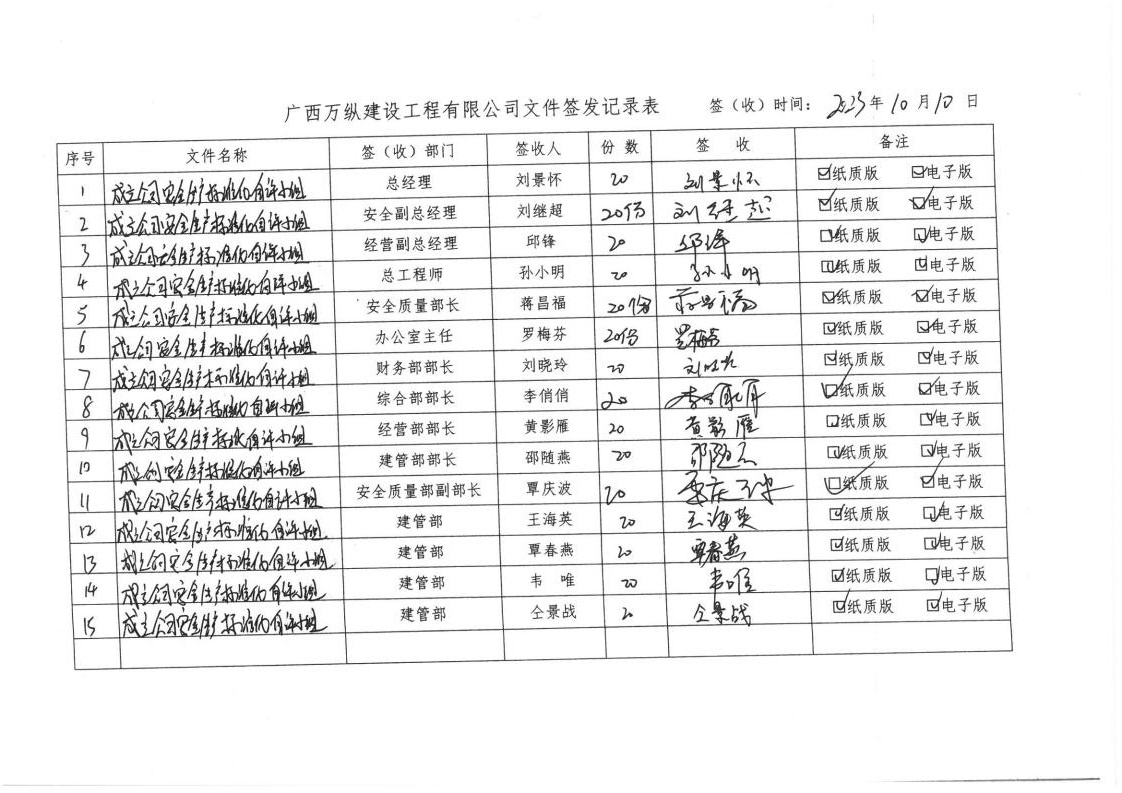 广西万纵建设工程有限公司关于发布公司《水利安全生产标准化二级达标创建和实施工作方案》的通知