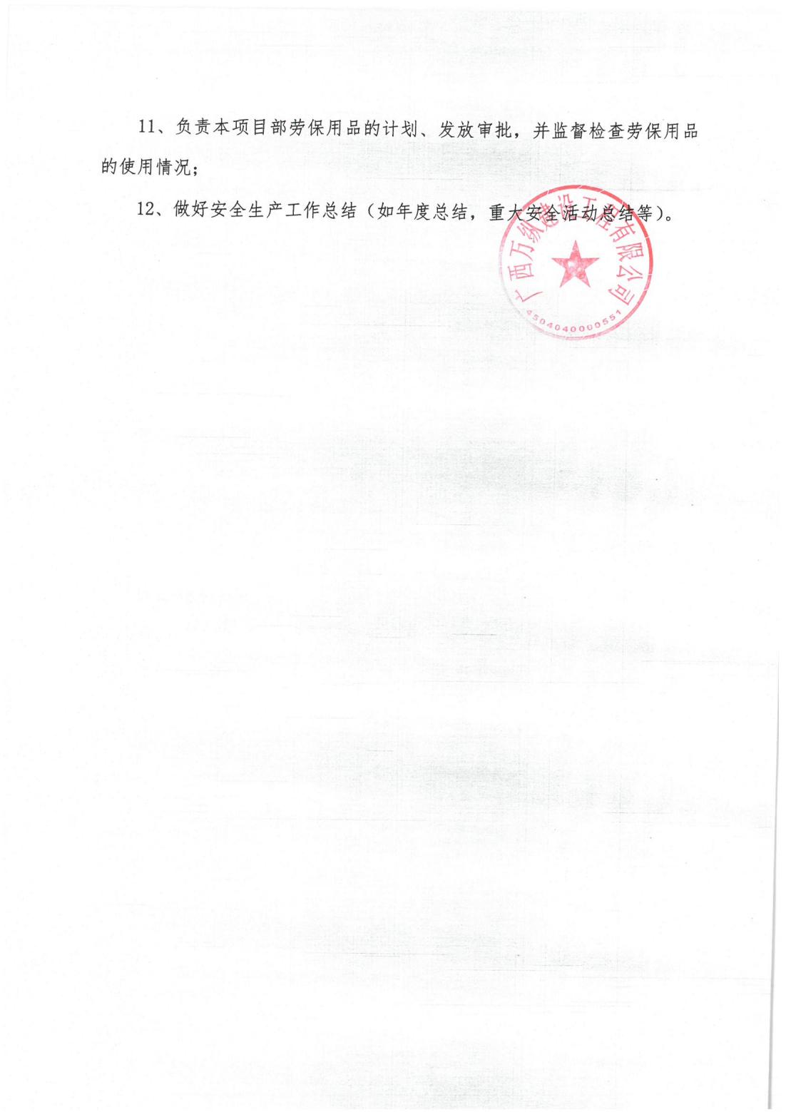 广西万纵建设工程有限公司关于泗维河项目部配备安全生产专职管理人员的通知