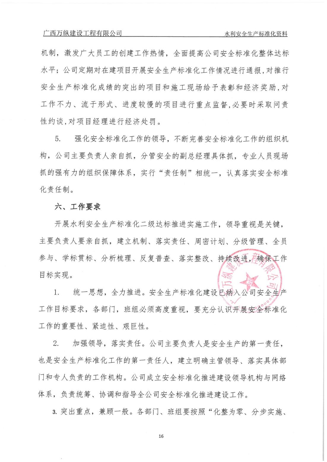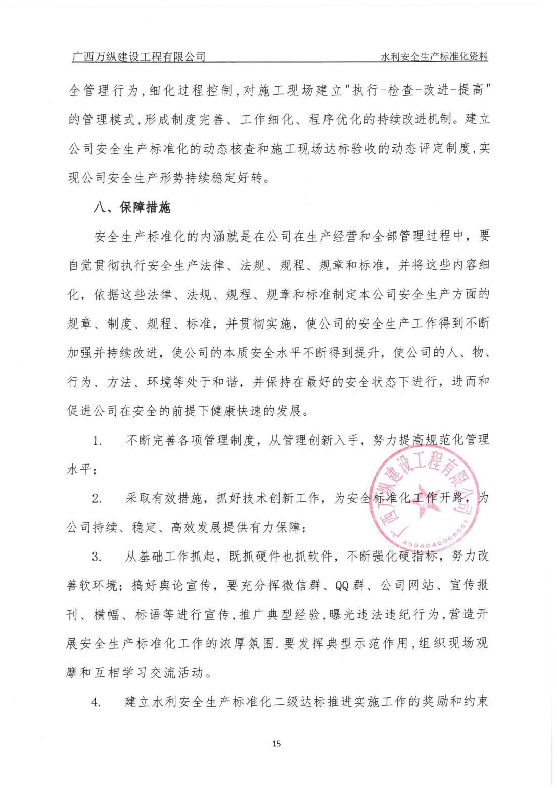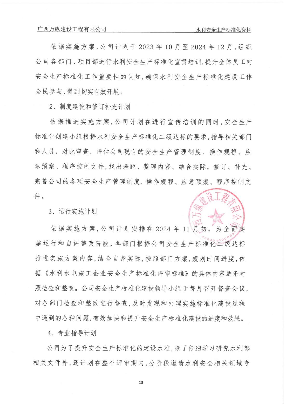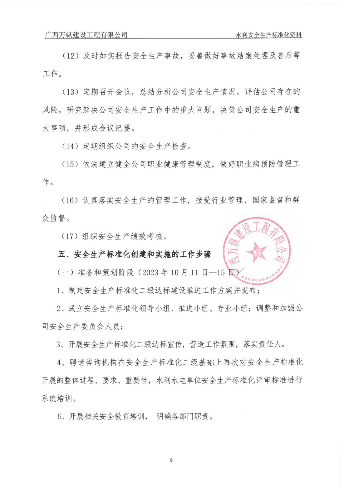 广西万纵建设工程有限公司水利安全生产标准化二级达标创建和实施工作方案