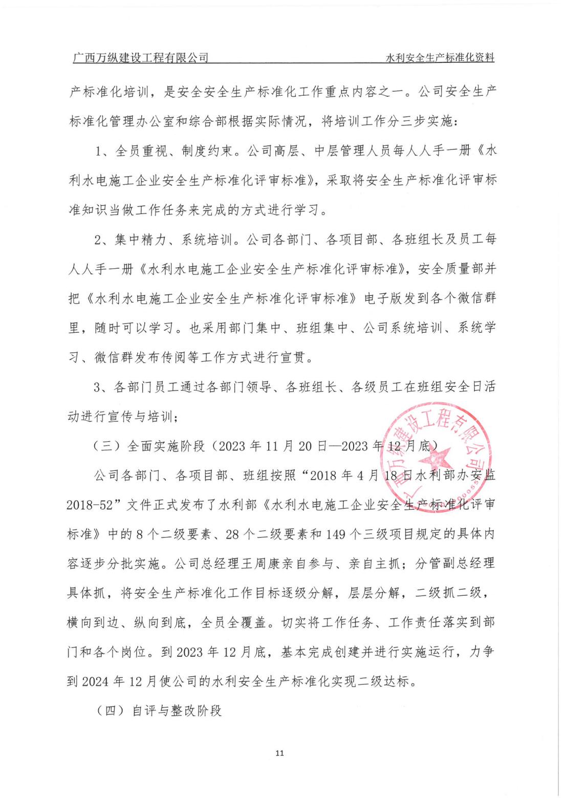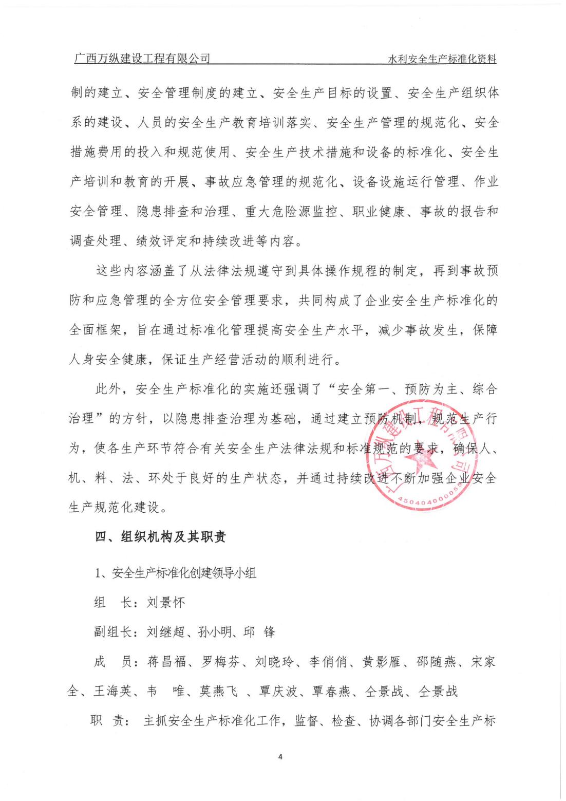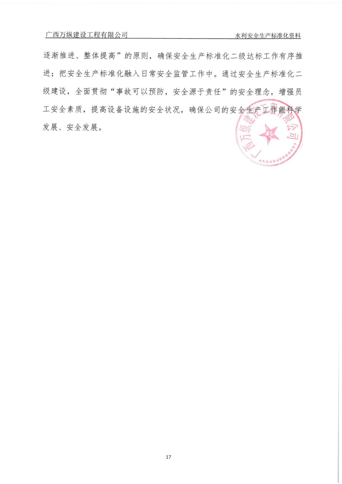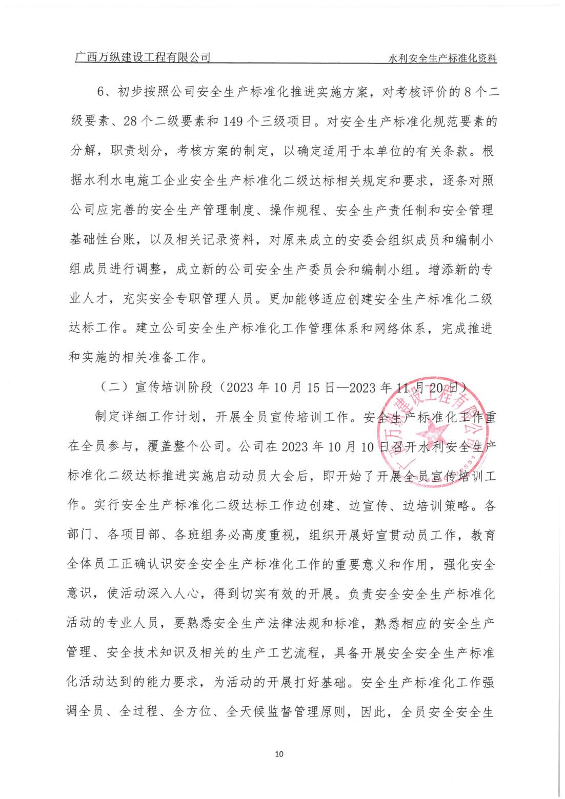 广西万纵建设工程有限公司水利安全生产标准化二级达标创建和实施工作方案