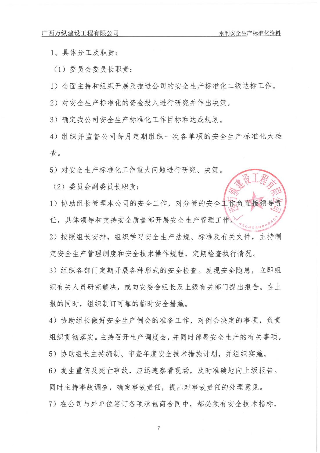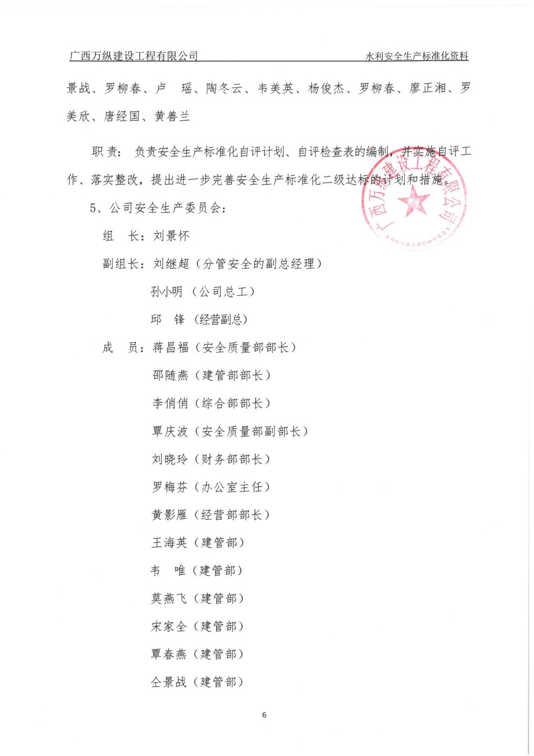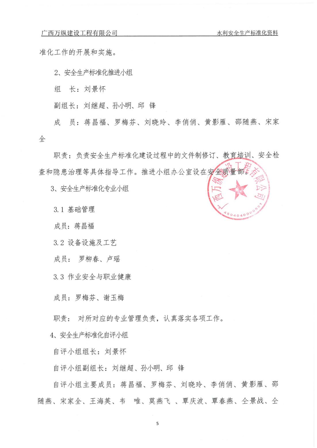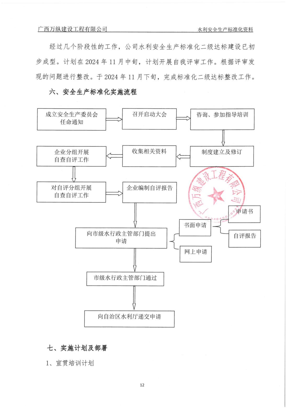 广西万纵建设工程有限公司水利安全生产标准化二级达标创建和实施工作方案