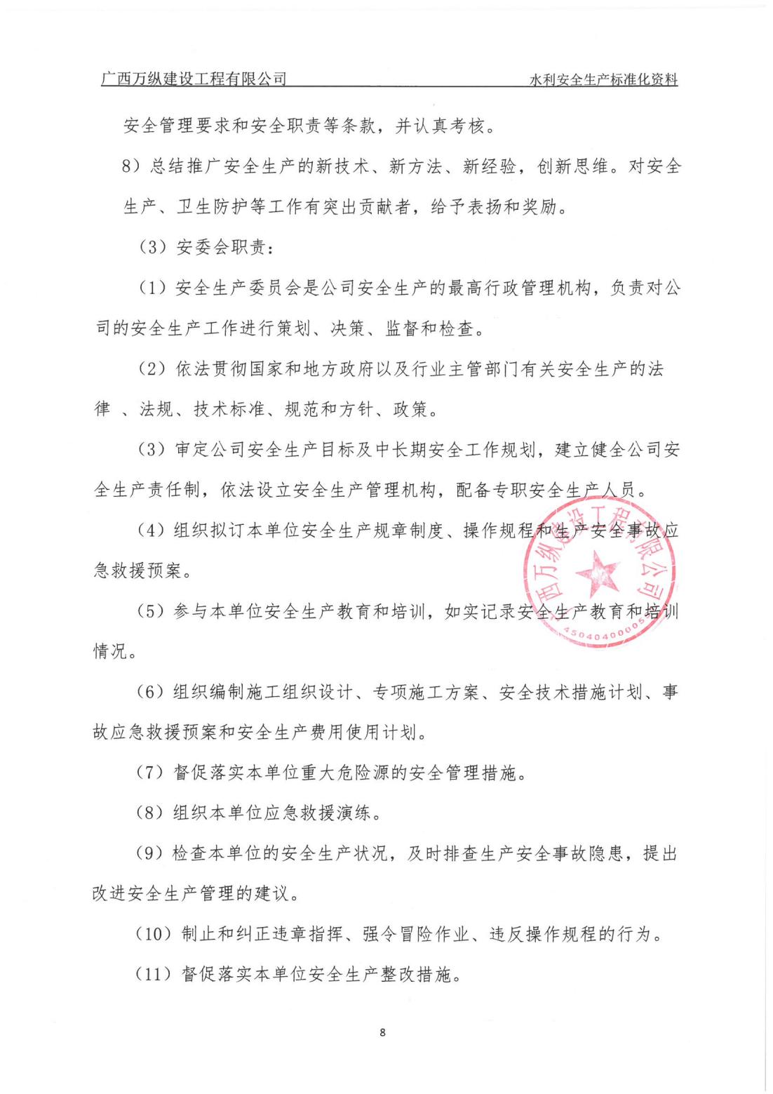 广西万纵建设工程有限公司关于发布公司《水利安全生产标准化二级达标创建和实施工作方案》的通知